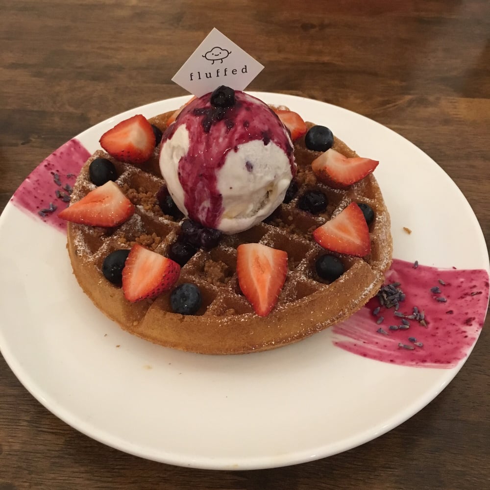 Among the menu, the Alice in Wonderland waffle stands out, adorned with vibrant berries and a lavish scoop of lavender ice cream, providing a unique touch that's both visually stunning and delicious. The lavender latte is another must-try, blending smooth coffee with aromatic floral notes for an unforgettable sip.